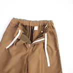 前明き、ファスナー、ワンタック、ウェストドローコード、ぐるりゴム、ウッド釦、後ろフラップポケット×1