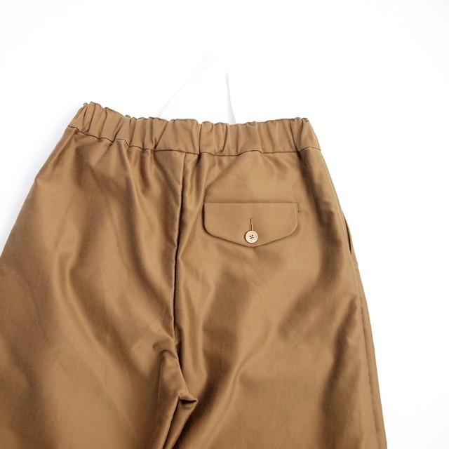 □ 丈夫でナチュラルな光沢感が特徴のコットンモールスキンを使用したパンツです。わたしたちはつくる事が日常で、一般的に服は着飾ることが主だと思うのですが、わたしたちにとっては着飾るというよりも着て働く視点で服をつくります。自然と丈夫な生地を選んだり、丈夫な仕様を心がけたり、そういうものを基点としてつくりました。