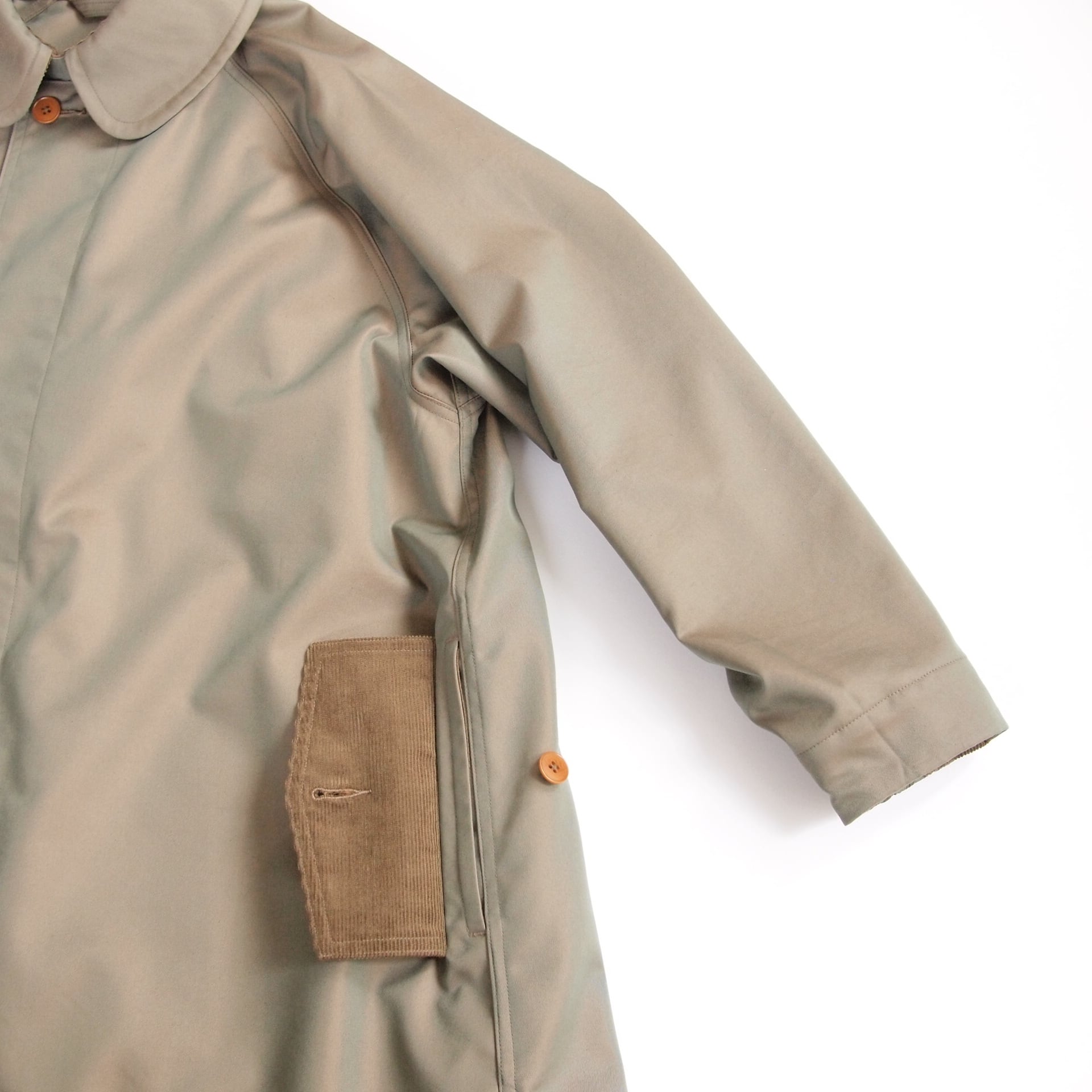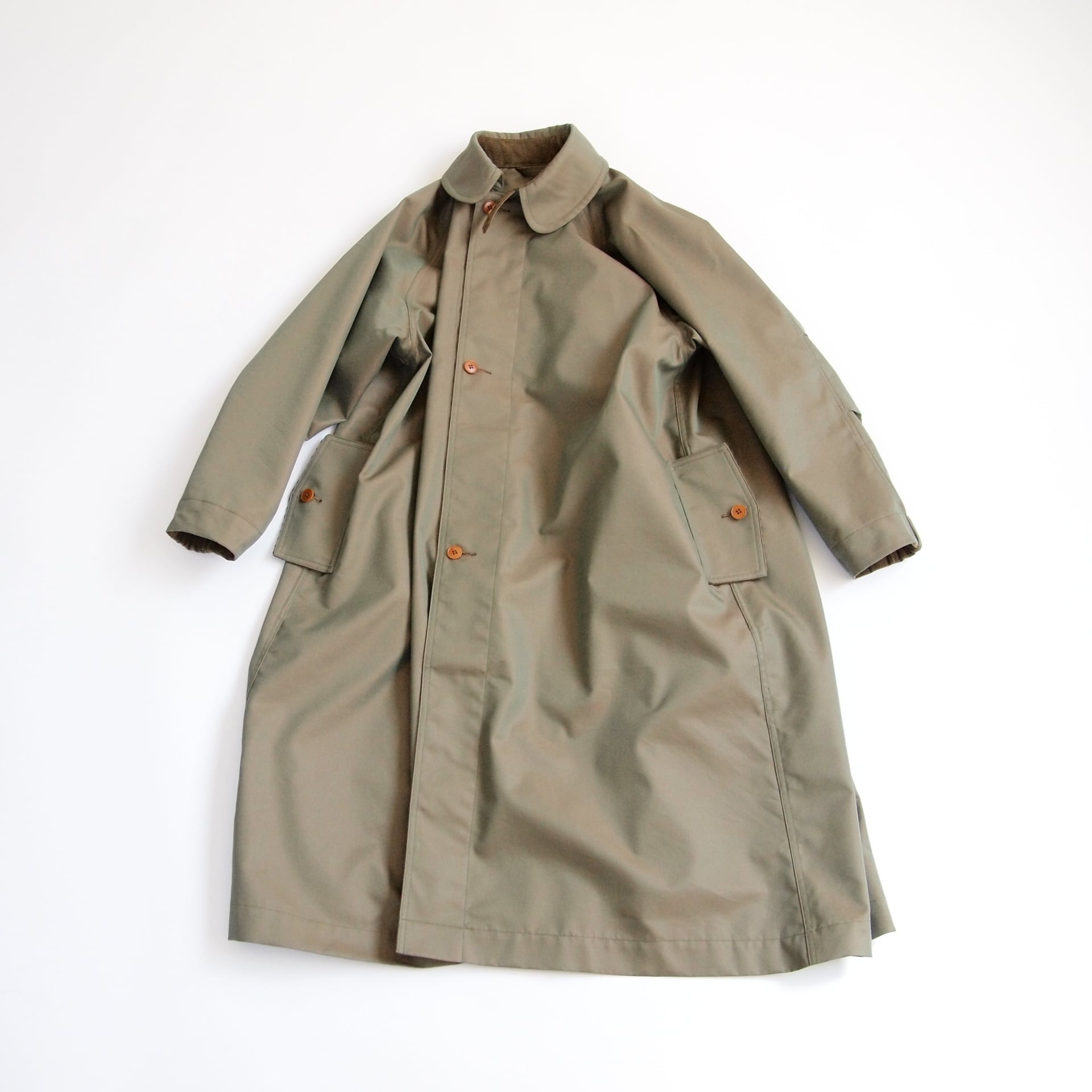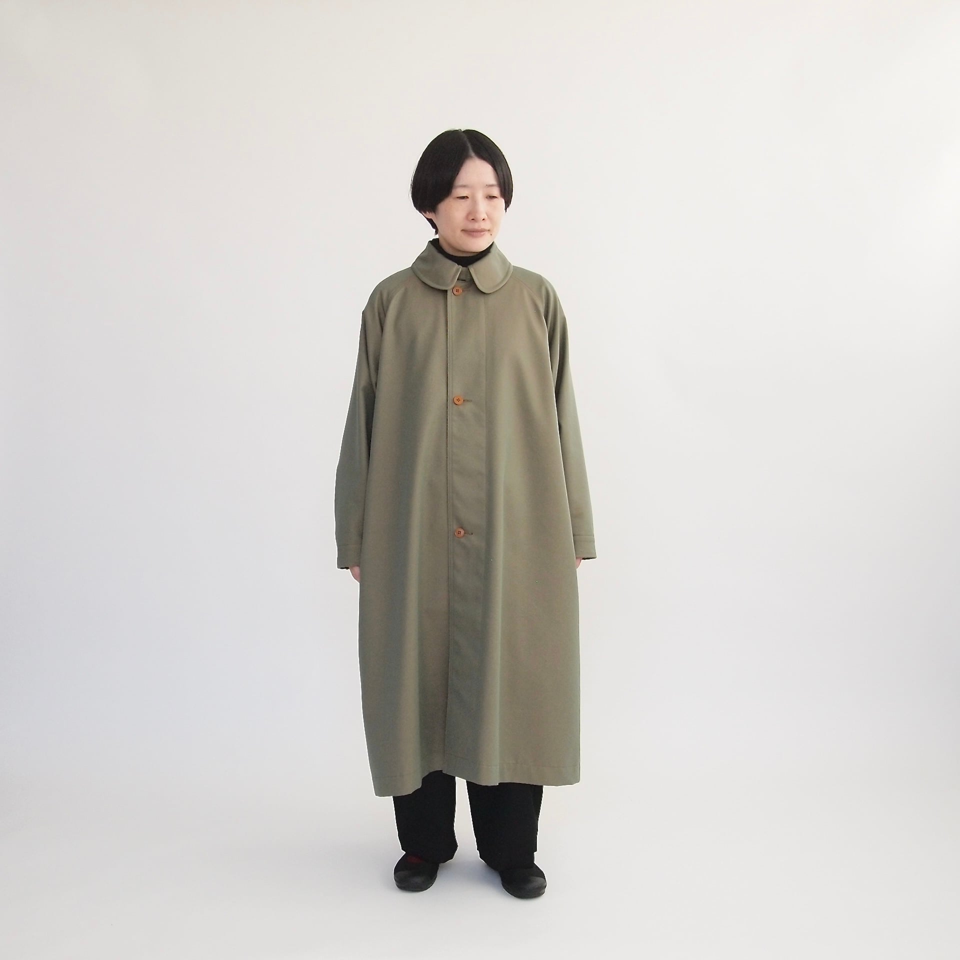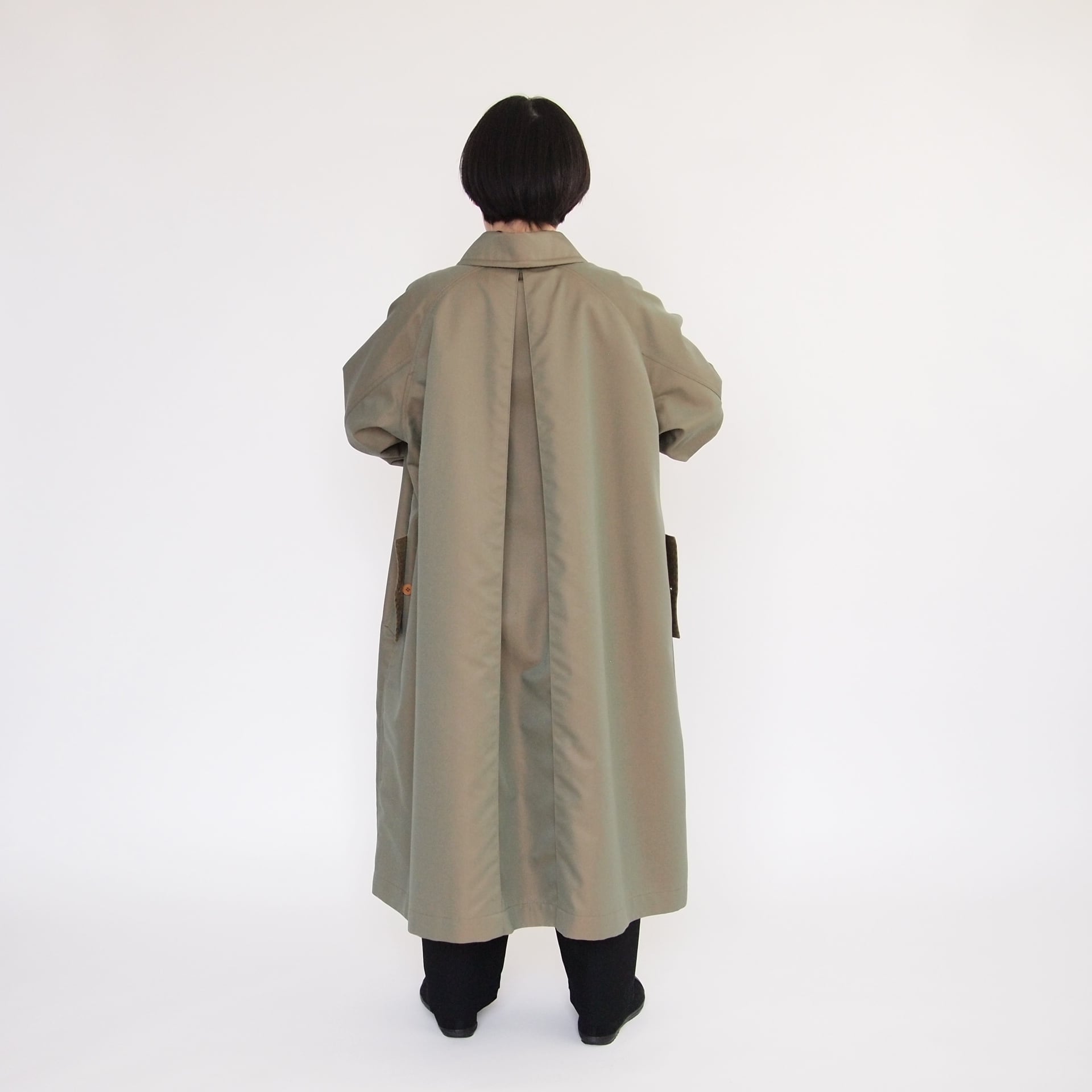 秋冬は着込む事が出来る事、そしてスプリングコートとしては、一枚仕立てであることで軽やかさが増します。年間で着られる季節を長く考え、その時の気温に応じた着方が出来るよう考慮しています。